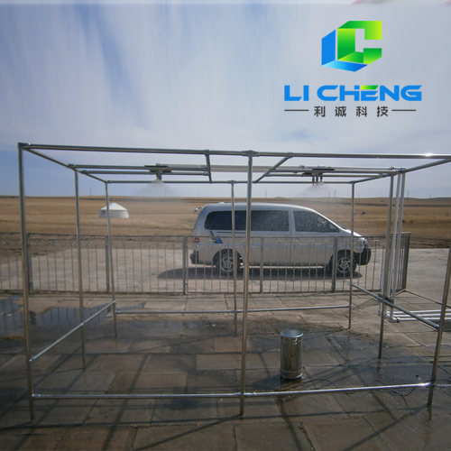 為使該系統(tǒng)模擬的降雨與自然降雨物理性能**大相似,采用世界上專業(yè)生產(chǎn)模擬雨滴噴頭的美國SPAYING SYSTEMS CO公司生產(chǎn)的FULLJET旋轉(zhuǎn)下噴式噴頭模擬降雨,配合幾十種不同規(guī)格的垂直全噴式雨滴模擬專用噴頭,疊加成一個雨滴噴射組(由3-5只噴頭構(gòu)成雨滴噴射組),即可有較大雨強變化,又可保證雨滴模擬效果從而形成從小到大的雨強連續(xù)可調(diào),雨滴形態(tài),降雨均勻度與自然降雨相似的人工自動模擬降雨。